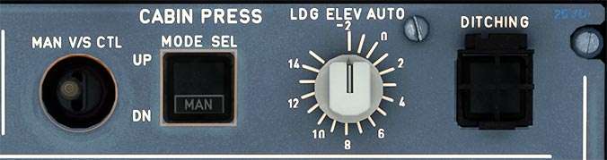 During a take-Off Abort (AB) the system prevents the cabin altitude from climbing. Cabin pressure is set back to the takeoff altitude + 0.1 psi.