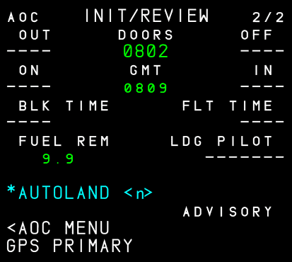 • F-PLN initialization (flight plan and performance data)